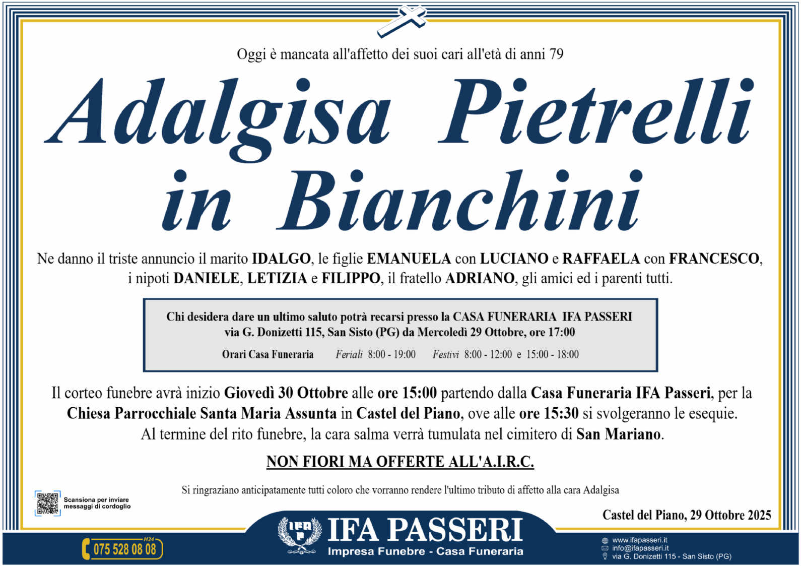 Partenza Casa Funeraria IFA Passeri, ore 15:00