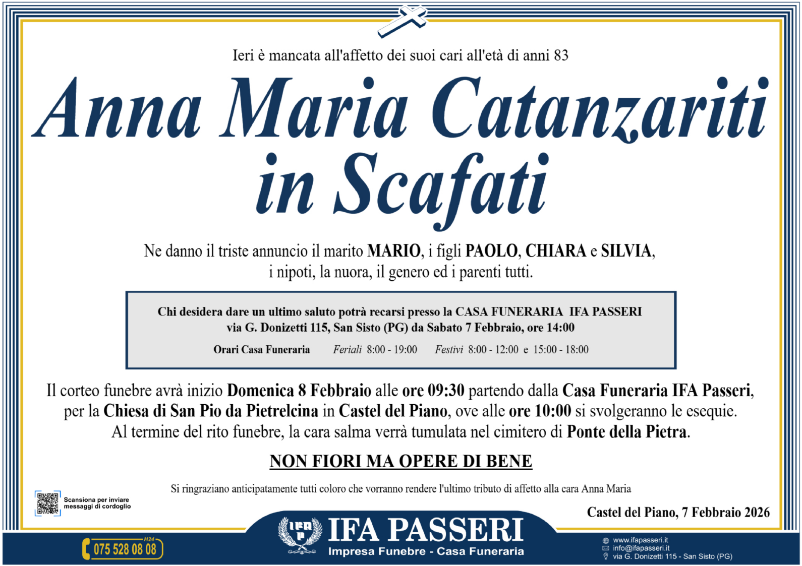 Anna Maria Catanzariti in Scafati Domenica 8 Febbraio ࠃ Partenza Casa Funeraria IFA Passeri, ore 9:30 Chiesa di San Pio da Pietrelcina in Castel del Piano, ore 10:00 Non fiori ma opere di bene Label Nome e Cognome* La tua Email* Modalità di pubblicazione: Autorizzo l'invio ai familiari e l'eventuale pubblicazione sul sito Ifapasseri Autorizzo esclusivamente l'invio riservato ai familiari Ho preso visione della Privacy Policy e della Cookie Policy del portale ifapasseri.it ed accetto espressamente il trattamento dei dati richiesti. Label Nome e Cognome* La tua Email* Ho preso visione della Privacy Policy e della Cookie Policy del portale ifapasseri.it ed accetto espressamente il trattamento dei dati richiesti. 0 Messaggi Inline Feedbacks View all comments