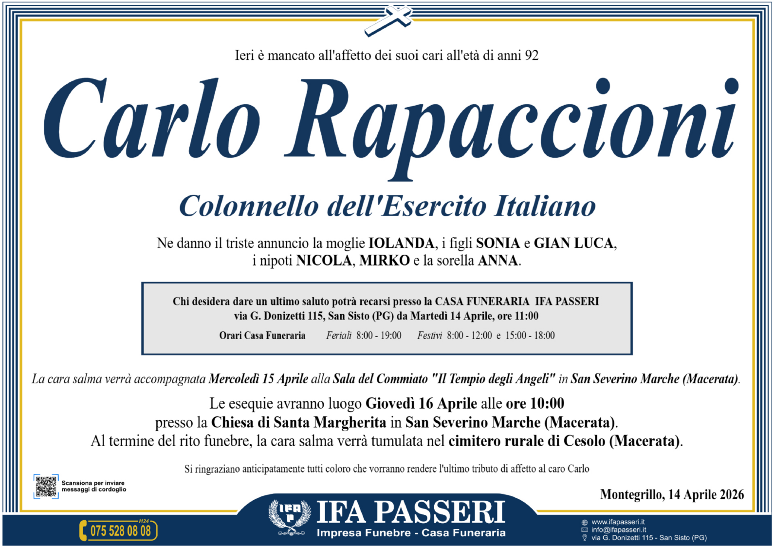 Rito funebre Giovedì 16 Aprile