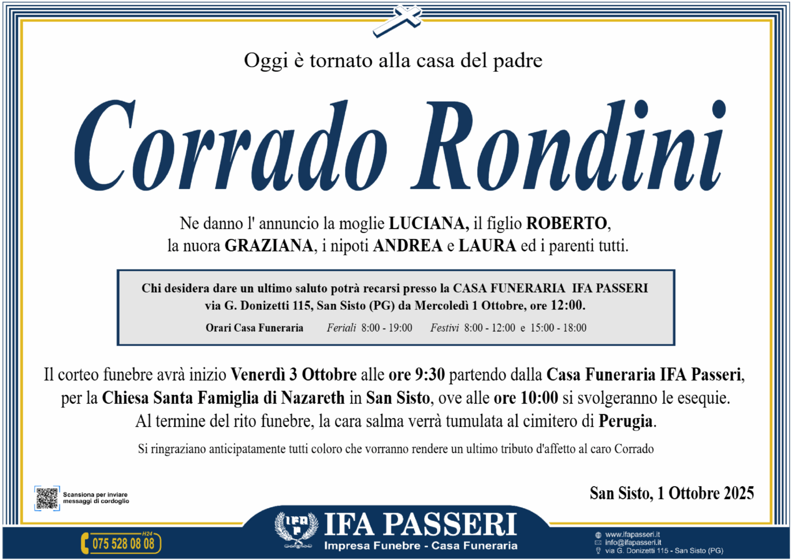 Ci uniamo con sincero cordoglio al dolore dell’amico Roberto e a Luciana per la perdita del caro padre e marito Corrado, uomo stimato e di profonda umanità.