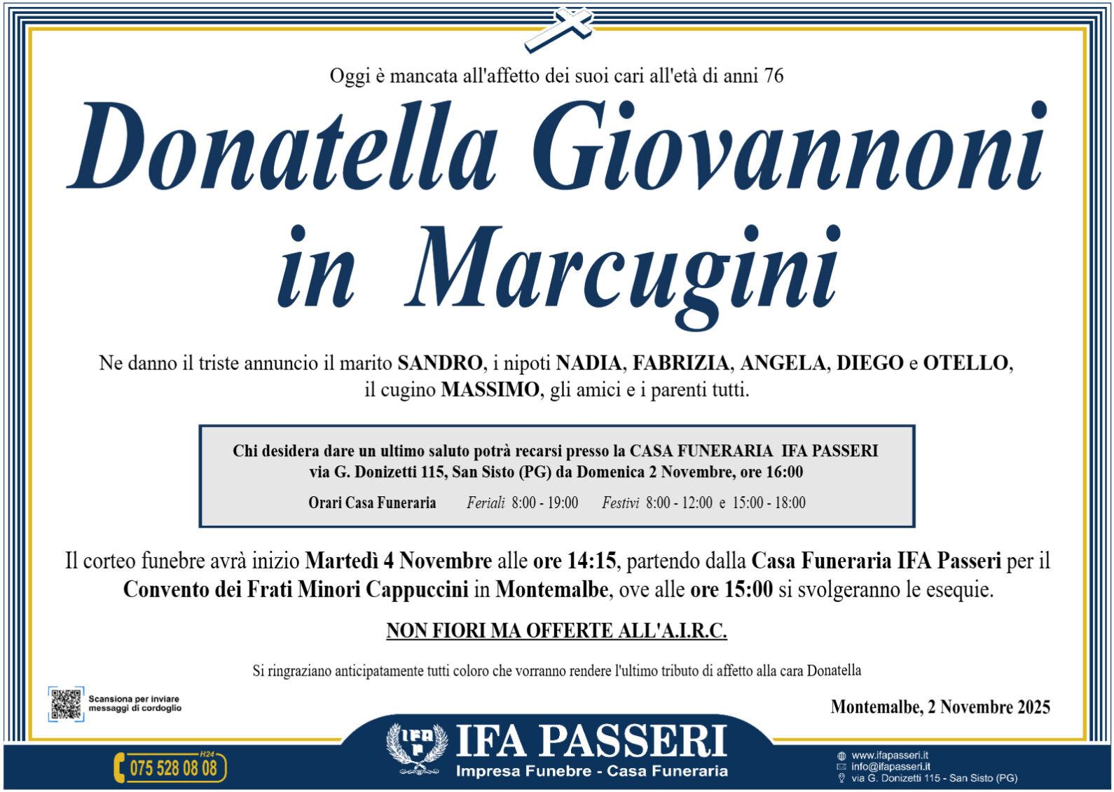 Non fiori ma offerte all'A.I.R.C.