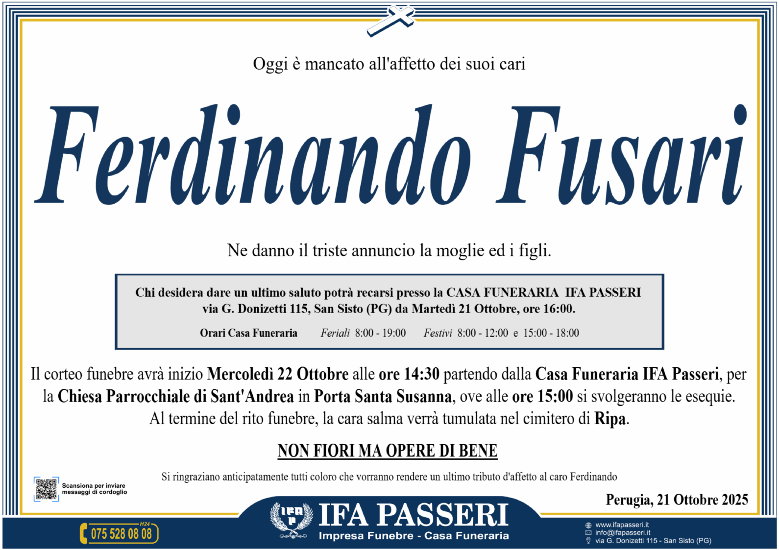 Partenza Casa Funeraria IFA Passeri, ore 14:30