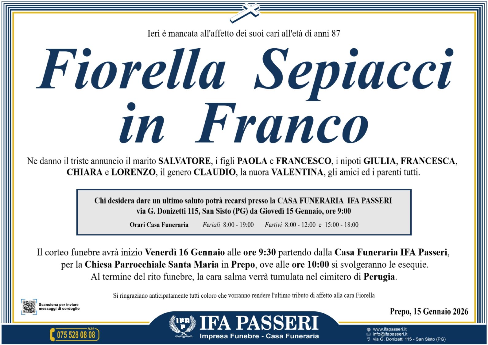 Cari geometri Salvatore, Francesco e la vecchia amica Paola, dal mio attuale letto di ospedale, scorrendo i necrologi ho letto della scomparsa della Signora Fiorella. Addolorato per questa vostra grave perdita invio le mie più sentite condoglianze. Roberto ed Angela Coli