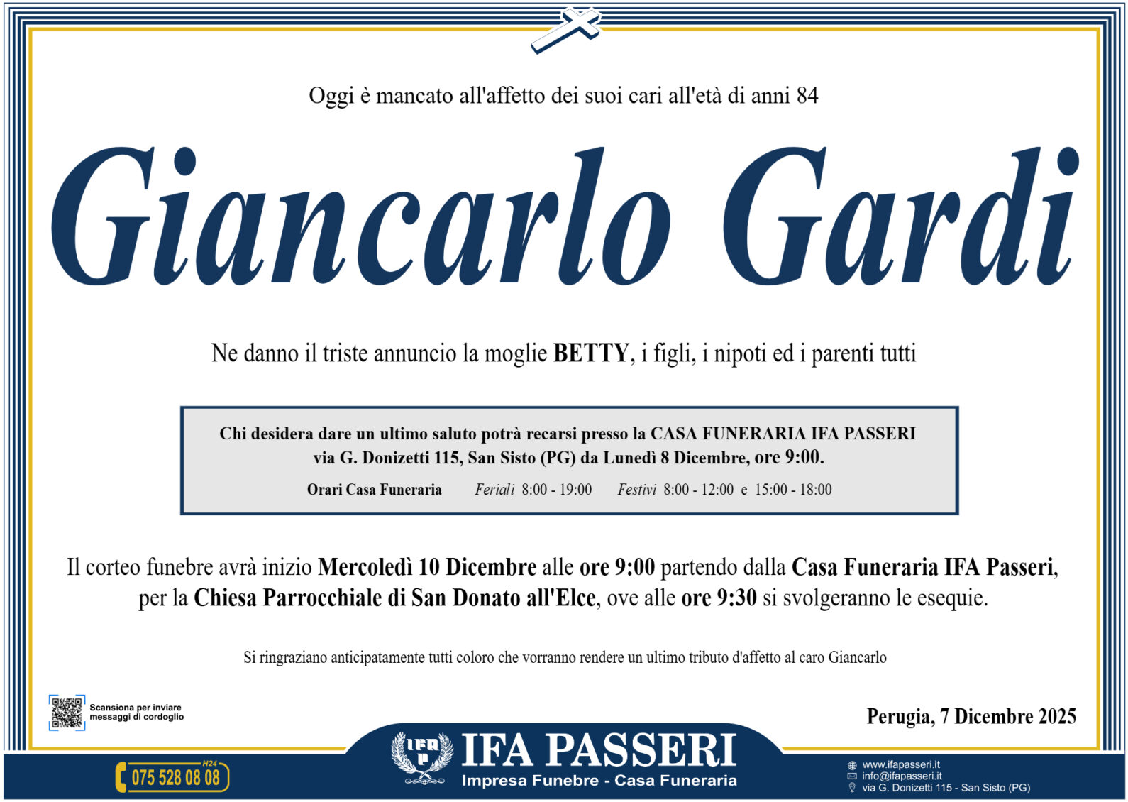 Giancarlo Gardi Mercoledì 10 Dicembre ࠃ Partenza Casa Funeraria IFA Passeri, ore 9:00 Chiesa Parrocchiale di San Donato all'Elce, ore 9:30 Label Nome e Cognome* La tua Email* Modalità di pubblicazione: Autorizzo l'invio ai familiari e l'eventuale pubblicazione sul sito Ifapasseri Autorizzo esclusivamente l'invio riservato ai familiari Ho preso visione della Privacy Policy e della Cookie Policy del portale ifapasseri.it ed accetto espressamente il trattamento dei dati richiesti. Label Nome e Cognome* La tua Email* Ho preso visione della Privacy Policy e della Cookie Policy del portale ifapasseri.it ed accetto espressamente il trattamento dei dati richiesti. 0 Messaggi Inline Feedbacks View all comments
