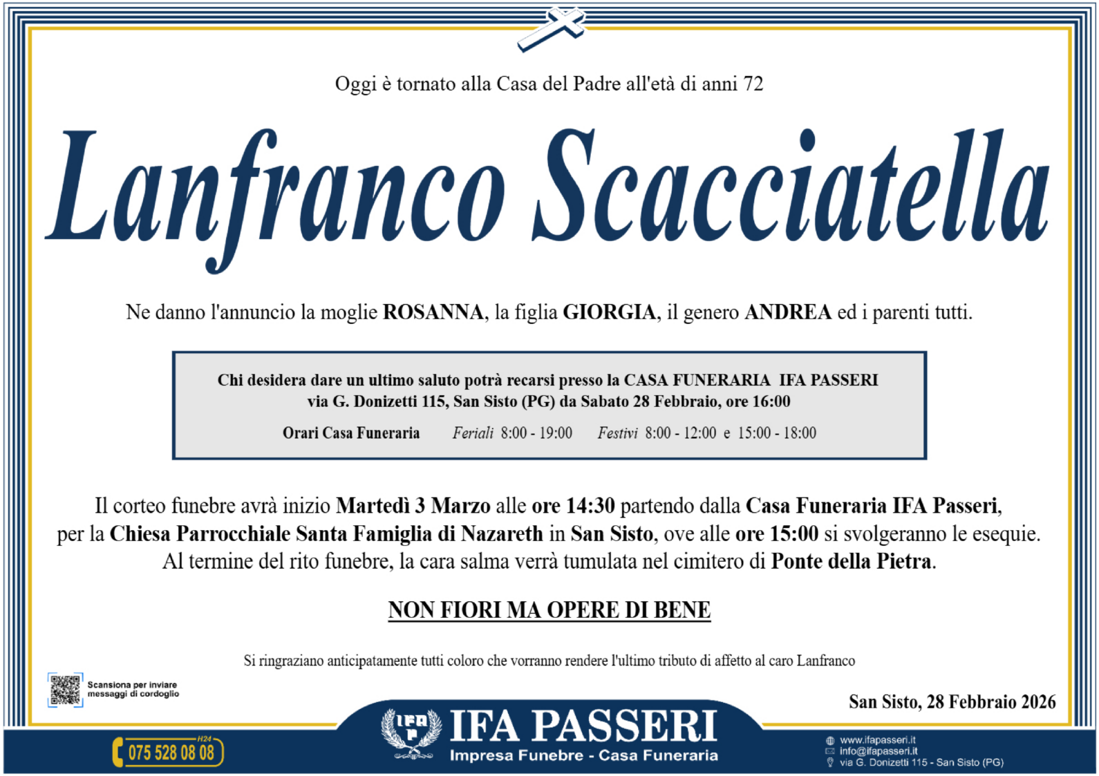 Partenza Casa Funeraria IFA Passeri, ore 14:30