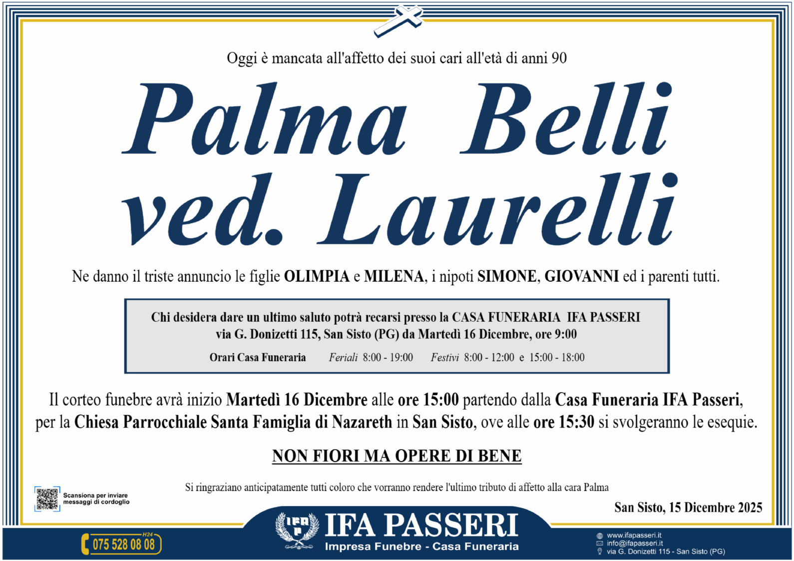 Palma Belli ved. Laurelli Martedì 16 Dicembre ࠃ Partenza Casa Funeraria IFA Passeri, ore 15:00 Chiesa Santa Famiglia di Nazareth in San Sisto, ore 15:30 Non fiori ma opere di bene Label Nome e Cognome* La tua Email* Modalità di pubblicazione: Autorizzo l'invio ai familiari e l'eventuale pubblicazione sul sito Ifapasseri Autorizzo esclusivamente l'invio riservato ai familiari Ho preso visione della Privacy Policy e della Cookie Policy del portale ifapasseri.it ed accetto espressamente il trattamento dei dati richiesti. Label Nome e Cognome* La tua Email* Ho preso visione della Privacy Policy e della Cookie Policy del portale ifapasseri.it ed accetto espressamente il trattamento dei dati richiesti. 0 Messaggi Inline Feedbacks View all comments