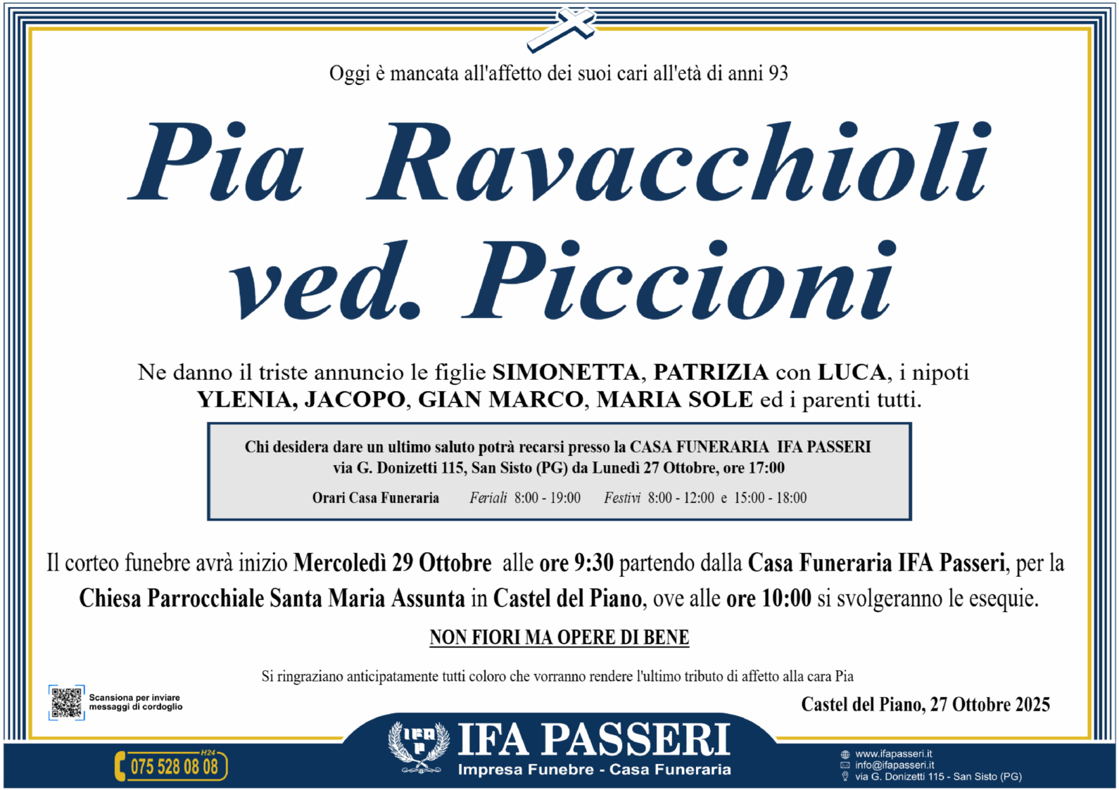 Partenza Casa Funeraria IFA Passeri, ore 9:30
