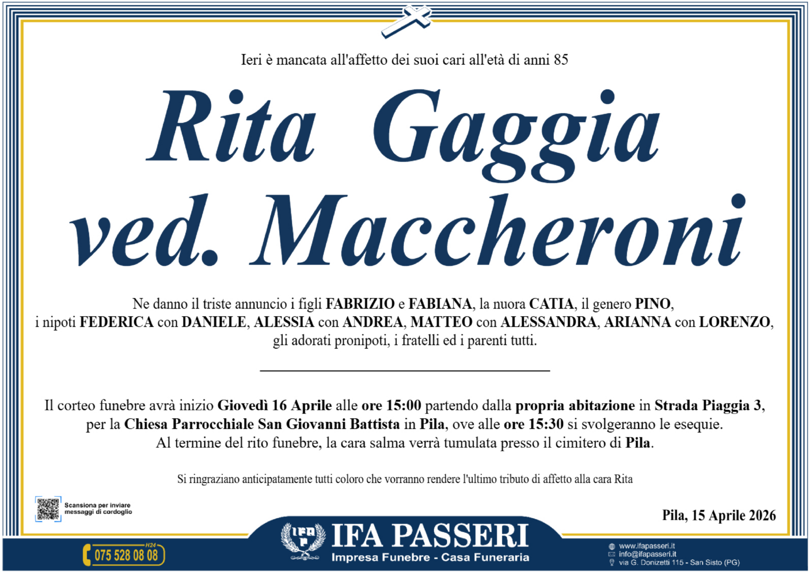 Chiesa Parrocchiale San Giovanni Battista in Pila, ore 15:30