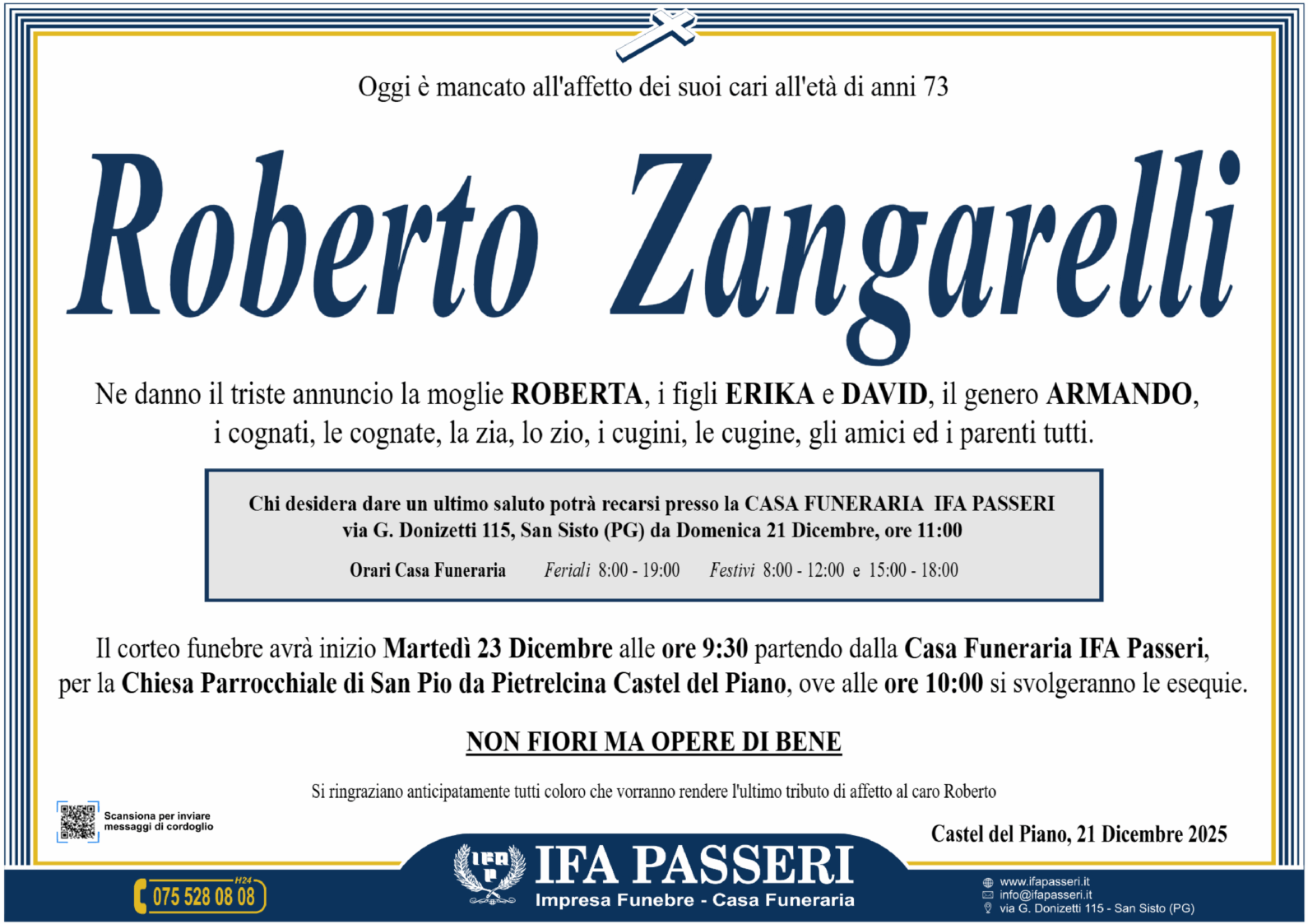 Partenza Casa Funeraria IFA Passeri, ore 9:30
