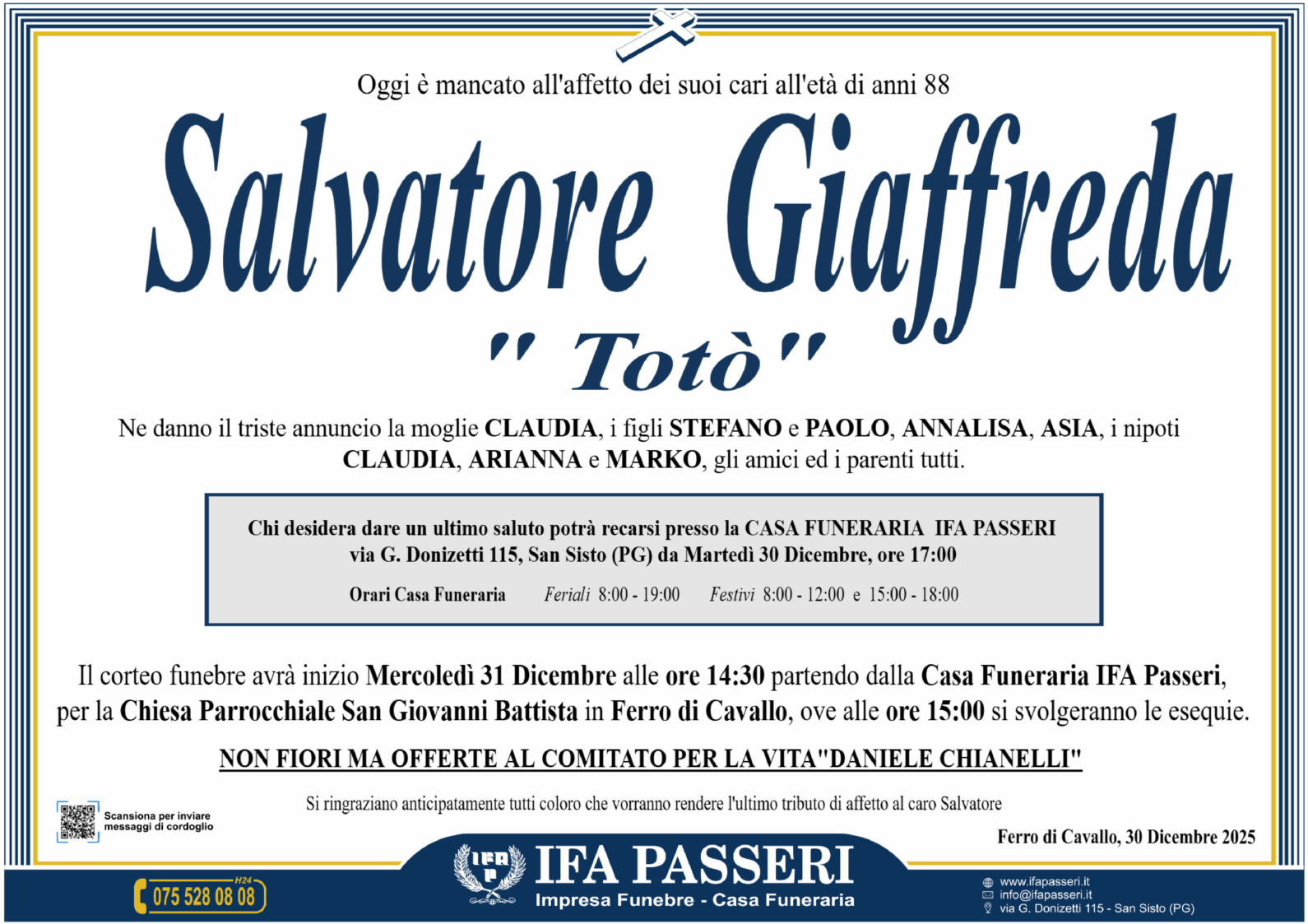 Con grande dolore vi porgiamo le nostre più sentite condoglianze! Il nostro grande amico Totò ci mancherà tantissimo! Ora è nella casa del Signore e riposa sereno dopo una lunga vita trascorsa con i suoi amati figli e nipoti e la sua dolce metà … Sempre con noi…. Nel vostro