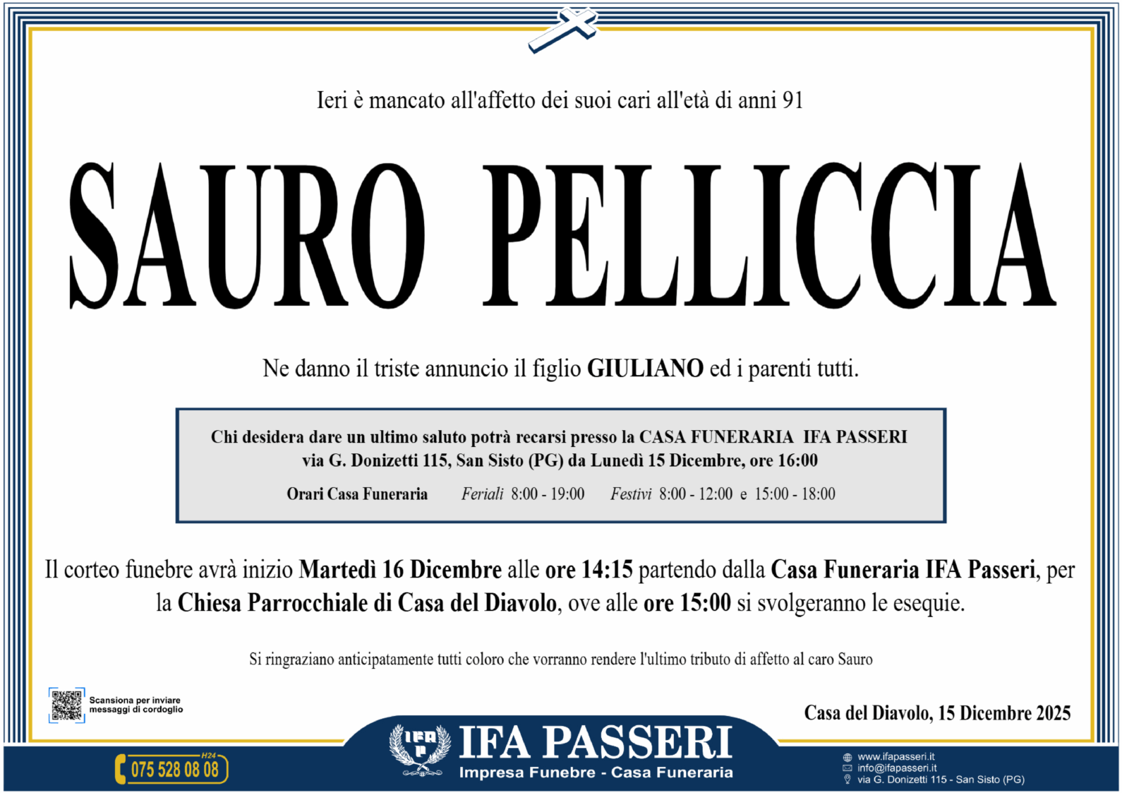 Partenza Casa Funeraria IFA Passeri, ore 14:15
