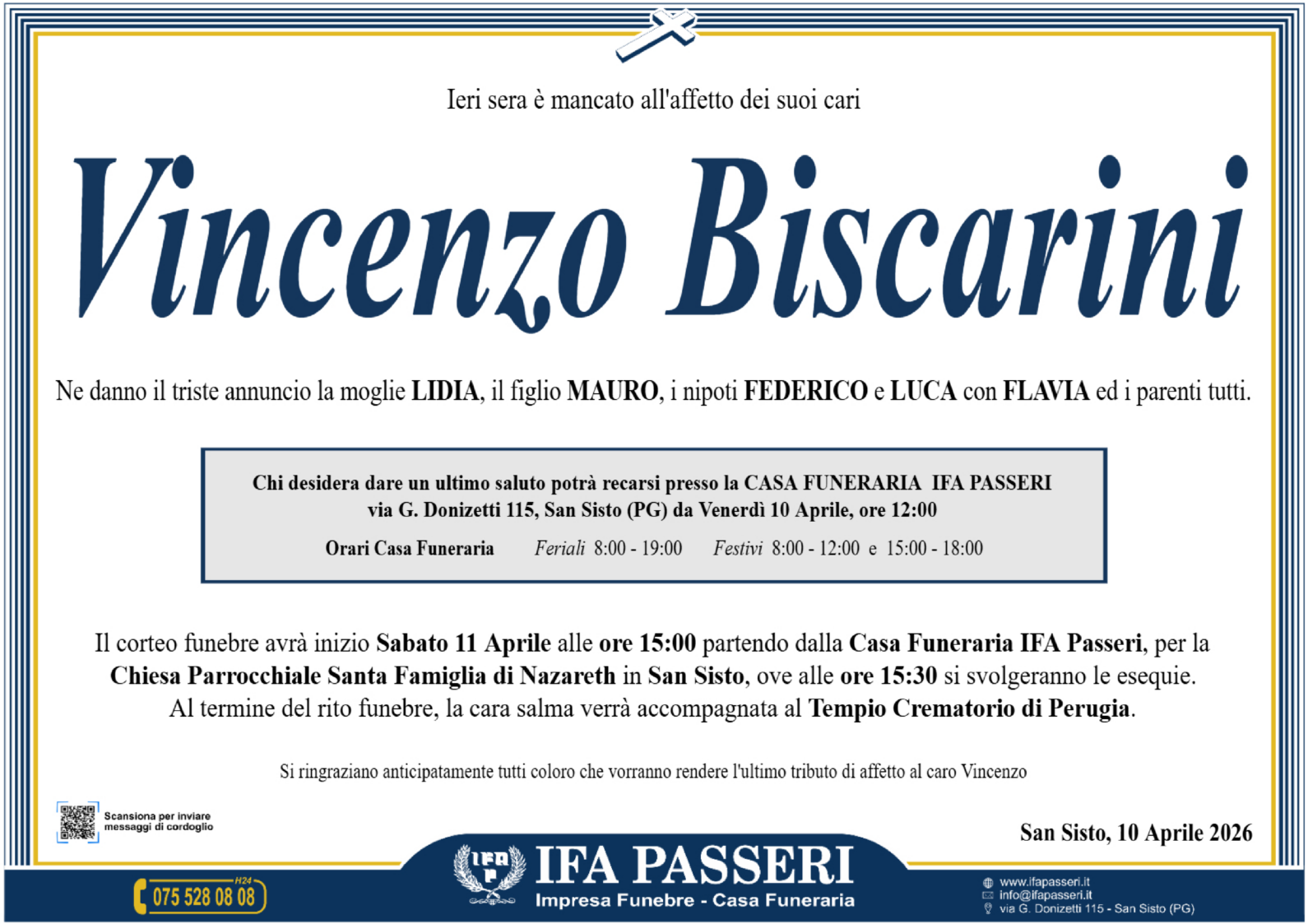 Vincenzo Biscarini Sabato 11 Aprile ࠃ Partenza Casa Funeraria IFA Passeri, ore 15:00 Chiesa Parrocchiale Santa Famiglia di Nazareth in San Sisto, ore 15:30 Label Nome e Cognome* La tua Email* Modalità di pubblicazione: Autorizzo l'invio ai familiari e l'eventuale pubblicazione sul sito Ifapasseri Autorizzo esclusivamente l'invio riservato ai familiari Ho preso visione della Privacy Policy e della Cookie Policy del portale ifapasseri.it ed accetto espressamente il trattamento dei dati richiesti. Label Nome e Cognome* La tua Email* Ho preso visione della Privacy Policy e della Cookie Policy del portale ifapasseri.it ed accetto espressamente il trattamento dei dati richiesti. 0 Messaggi Inline Feedbacks View all comments